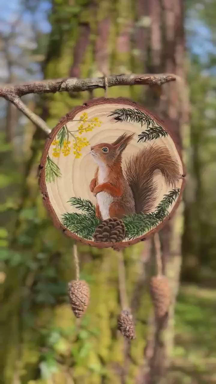 🌿 Peinture Unique sur rondin de bois – “ Premier parfum ” 🐿️🎨